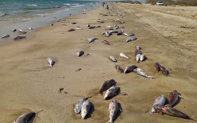 تخمین بیش از ۱۰تن لاشه تلف شده گربه ماهی در ساحل جاسک / دلیل: احتمال آلودگی نفتی یا صید صیادی